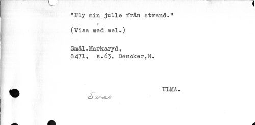 //// I "Fly min julle från strand." //// (Visa med mel.) //// Smål.Mark aryd, //// 8471? s.63, Dencker^N. //// ^ ULMA. //// i ^^ ^^ ////