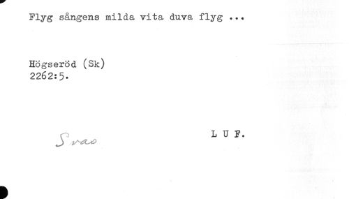 //// Flyg sångens milda vita duva flyg ... //// HÖgserod (Sk) //// 2262:5- //// L U F. //// J ////