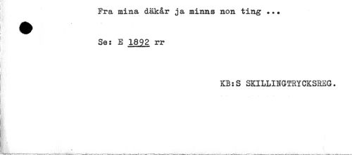 //// Fra mina däkår ja minns non ting +.+ //// j //// ! //// Se: E 1892 rr //// i //// ! //// KB:S SKILLINGTRYCKSREG. //// ti" ////