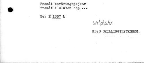//// Framåt beväringspojkar //// framåt i sluten hop ... //// Se: E 1887 k //// s //// ! //// KB:S SKILLINGTRYCKSREG. //// t //// t - ' -. 3 : ( //// T //// I //// ti //// Ks * //// . . ____.' . .. ... . -. * ____,_--^-,- ////