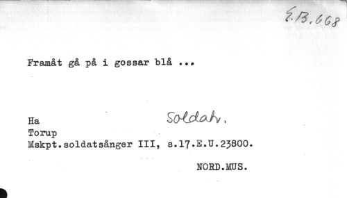 //// Framåt gå på i gossar blå ..* //// Ha . //// Torup //// Mskpt.soldatsånger III, S.17-E.U.23800. //// NORD. ms. ////
