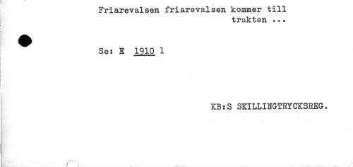 //// Friarevaisen friarevalsen kommer till //// trakten ... //// ^ Se: E 1910 1 //// KB:S SKILLINGTRYCKSREG. //// § . s - ; . //// s * ////