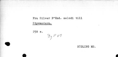 //// Fru Silver B"End. melodi till //// Styvmodern. //// 258 s. //// ^ SÖDLING MS. //// . ////