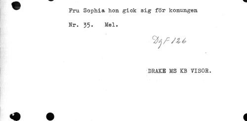//// ^^ Fru Sophia hon gick sig för konungen //// Nr. 35. Mel. //// * //// DRAKE MS KB VISOR. ////