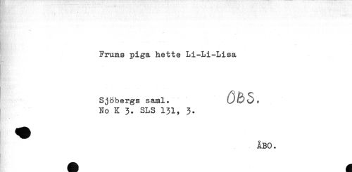 //// Fruns piga hette Li-Li-Lisa //// Sjöbergs saml. //// No K 3. SLS 131, 3. //// ÅBO. ////