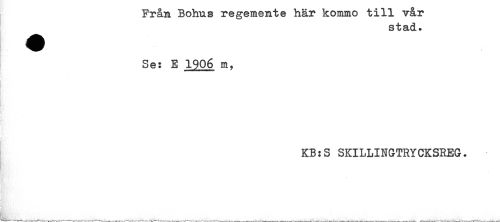 //// Från Bohas regemente här kommo till v&r //// stad. //// Se: E 1906 m, //// KB:S SKILLINGTRYCKSREG. //// La-^----.^, ^_____, ^____ ////