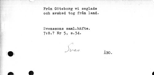//// Från Göteborg vi seglade //// och avsked tog från land. //// '. ; W ' ' ' # //// Svenssons saml.häfte. //// 7:8.? Nr s.34^ //// K; //// ^ ^^ ÅBO. ////
