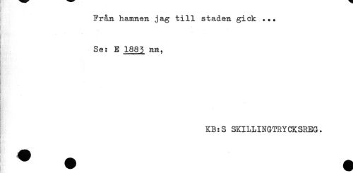 //// Från hamnen jag till staden gick ... //// Se: E 1885 nn, //// t //// )Bt * v //// f //// KB:S SKILLINGTRYCKSREG. ////