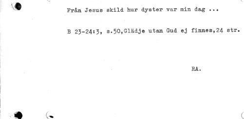 //// Från Jesus skild hur dyster var min dag ... //// B 23-24:3, s.50,Glädje utan Gud ej finnes,24 str. //// RA. //// [ //// i //// A f- r ////