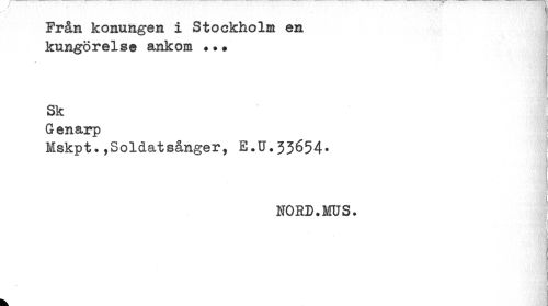 //// Från konungen i Stockholm en //// kungörelse ankom *.* //// Sk //// < //// G enarp //// Hskpt.ySoldatsånger, E.U.33654- //// H //// ! //// NORD.MUS. ////