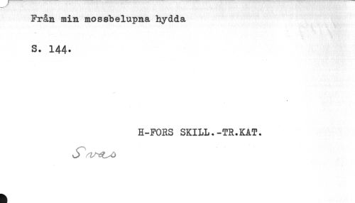 //// Från min mossbelupna hydda //// S. 144* //// H-FORS SKILL.-TR.KAT. ////