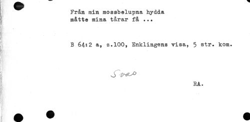 //// Från min mossbelupna hydda //// I måtte mina tårar få ... //// t //// ! //// ^ B 64:2 a, s.lOO, Enklingens visa, 5 str. kom. //// ) //// RA. //// Hk H //// H 1 ) ////