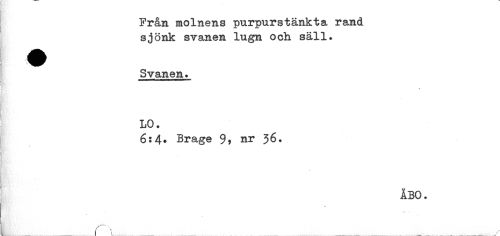//// Från molnens purpurstänkta rand //// sjönk svanen lugn och säll. //// Svanen. //// ' < //// LO. //// 6:4* Brage nr 36. //// 1 * //// ÅBO. //// L' . r....., ////