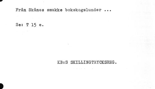 //// Från Skånes smukke bokskogslunder ... //// Se: T 15 e. //// KB:S SKILLINGTRYCKSREG. ////