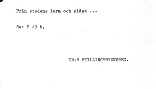 //// Från stadens larm och plåga ... //// Se: P 49 b, //// * * //// KB:S SKILLINGTRYCKSREG. //// //// /
