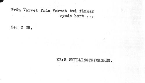 //// Från Varvet från Varvet två fångar //// rymde bort ... //// Se: C 28, //// t //// KB:S SKILLINGTRYCKSREG. ////