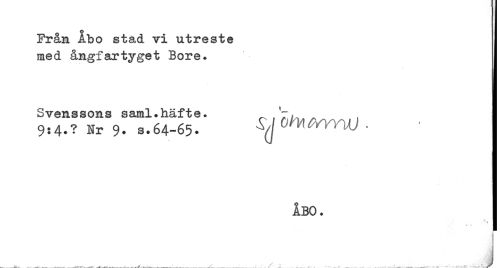 //// Från Åbo stad vi utreste //// med ångfartyget Bore. //// Svenssons saml.häfte. ^ ^ , ] //// 9:4.? Nr 9.S.64-65. //// ÅBO. ! //// ' I //// . _ ._. .,. ._, . . ___. . - ^ ////