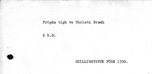 //// Frögda tigh tu Chris ti Brwdh //// i //// < //// 9 u.s. //// SKILLINGTRYCK FÖRE 1700. ////