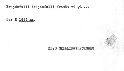 //// Fröjdefullt fröjdefullt framåt vi gå ... //// ] //// ! //// Se: E 1892 mm, //// * //// KB:S SKILLINGTRYCKSREG. //// '. -'. ' ////