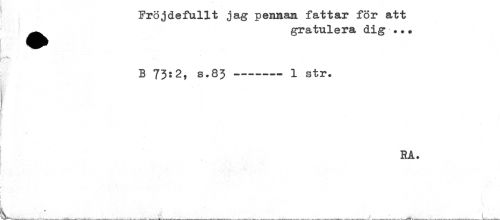 //// Fröjdefullt jag pennan fattar för att //// ^ gratulera dig ... //// v-^. - ' ... //// i //// B 73:2, s.83----1 str. //// ^' //// ; //// RA. //// , '' *:'. . _. * '* ////