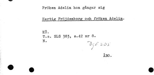 //// Fröken Adelin hon gångar sig //// Hertisr Fröjdenbora och fröken Adelin. //// KÖ. //// T.s. SLS 383, s.42 nr 8. //// N. ^ //// ÅBO. ////