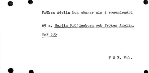 //// Fröken Adelin hon gångar sig i rosendegård //// 69 a. Hertig Fröjdenborg och fröken Adelin, //// DgF 305. //// 1 //// i //// F S F. V:l. ////
