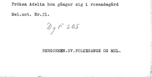 //// Fröken Adelin hon gångar sig i rosandegård //// Mel.not. Nr.21. ! //// ! //// ! //// ] //// BERGGREEN.SV.FOLKESMGE OG MEL. ! //// i //// i //// * < ////
