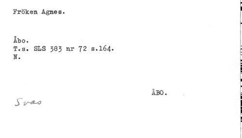 //// Fröken Agnes. * //// H //// Åbo. //// T.s. SLS 383 nr 72 s.164. r //// N. * //// H //// H //// . //// ÅBO. //// f ////