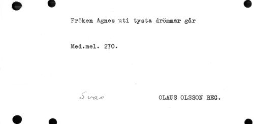 //// Fröken Agnes uti tysta drömmar går //// Hed.mel. 270. //// tS OLAUS OLSSON REG. ////