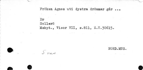 //// - Fröken Agnes uti dystra drömmar går + + * //// ! //// . t //// Dr //// Sollerö //// Mskpt., Visor VII, s.811, E.U.30615. //// ! //// 1 t- - //// < * - -. . . . //// ^^ <3 ////