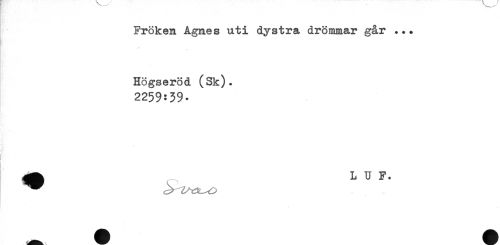 //// Fröken Agnes uti dystra drömmar går ... //// Högseröd (Sk). //// 2259:39- //// . //// ! //// ! ////
