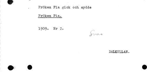 //// ' * / . //// Fröken Fia gick och sydde //// Fröken Fia. //// j T //// 1909. Nr 2. //// DALKULLAN. ////