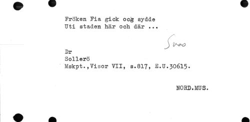 //// Fröken Fia gick ocg sydde //// Uti staden här och där ... //// Dr //// Sollerö //// Mskpt.,Visor VII, s.817, E.U.30615. //// NORD.MUS. ////