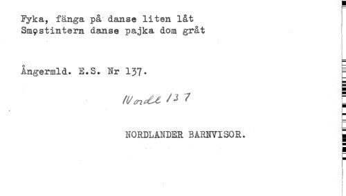 //// Fyka, fänga på danse liten låt //// Smystintern danse pajka dom gråt //// * //// t //// Ångermld. E.S. Nr 137. ^ //// NORDLANDER BARNVISOR. g //// ! //// r //// < ////