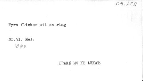 //// Fyra flickor uti en ring //// Nr.51, Mel. //// DRAKE MS KB LEKAR. ////