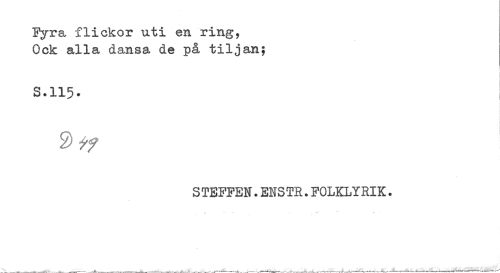 //// Fyra flickor uti en ring, //// Ock alla dansa de på tiljan; //// S.115. //// S TEFFEN.ENSTR.FOLKLYRIK. ////