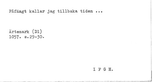 //// Fåfängt kallar jag tillbaka tiden ... //// Ärtemark (Dl) //// 105?. s.29-30. //// i //// I F G H. //// ___ - - ___.__<__. .....- - t-__ .A.__)_- *__-_____,_-.... ......-__-"..... ...... ......- ---' --- ////
