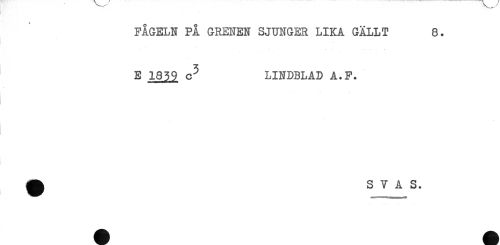 //// FÅGELN PÅ GRENEN SJUNGER LIKA GÄLLT 8. //// E 1339 c^ LINDBLAD A.F. //// ^ S 7 A S. //// ^^^ " ....... ////