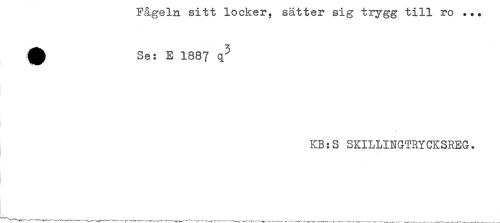 //// Fågeln sitt locker, sätter sig trygg till ro ... //// Se: E 1887 q^ //// KB:S SKILLINGTRYCKSREG. ////