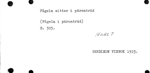//// Fågeln sitter i päronträd //// (Fågeln i päronträd) //// s. 305. //// . //// t //// BENDIXON VISBOK 1923. ////