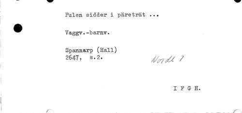 //// Fulen sidder i päreträt ... //// ^^ Vaggv.-barnv. //// Spannarp (Hall) //// 2647, s.2. ^ //// /i //// I F G H. //// r . . _ ___ . ^....._ .. ////