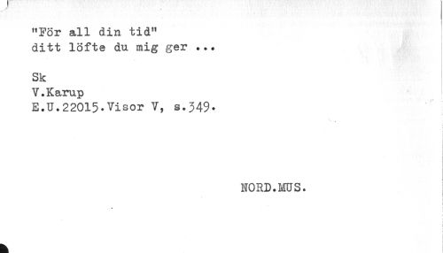 //// "För all din tid" //// ditt löfte du mig ger ... //// Sk //// V.Karup //// E.U.22015-Visor V, s.349* //// NORD.MUS. //// i //// * ////