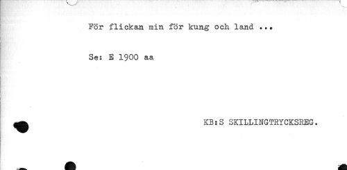//// ^ " ' ...... //// För flickan min för kung och land ... //// B?:' //// Se: E 1900 aa //// } //// ^ KB:S SKILLINGTRYCKSREG. ////