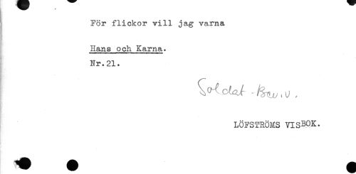 //// j För flickor vill jag varna //// Hans och Karna. //// Nr.21. //// . //// LÖFSTRÖMS VISBOK. ////