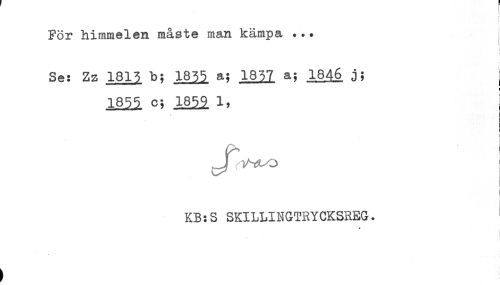 //// För himmelen måste man kämpa ... j //// < //// Se: Zz 1815 b; 1855 a; 1857 a; 1846 j; j //// 1855 c; 1859 1, //// i //// ! //// ; //// J^^j I //// KB: S SKILLINGTRYCKSREG. //// 4 ////