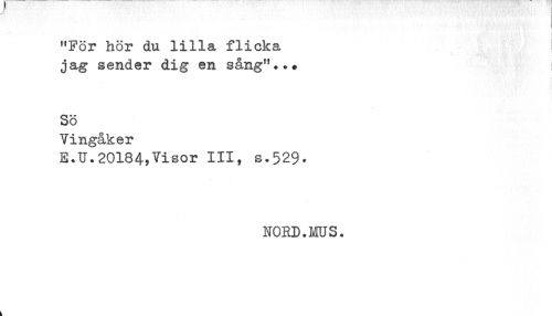 //// "För hör du lilla flicka //// jag sender dig en sång"... //// Sö //// Vingåker //// E.U.20184,Visor III, s.529. //// NORD.MUS. ////