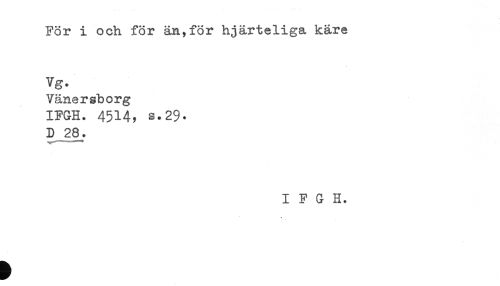 //// För i och för än,för hjärteliga käre //// Vg. //// Vänersborg //// IFGH. 4514, s.29. //// D 28 . //// IFGH. ////