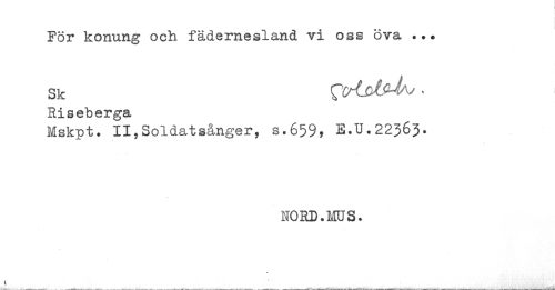 //// sk . //// Riseberga //// Mskpt. II,Soldatsånger, s.659, E.U.22363. //// NORD.MUS. ////
