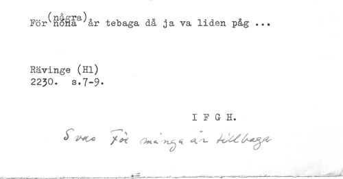 //// /a ^ //// För nona år tebaga då ja va liden påg ... //// Rävinge (Hl) //// 2230. s.7-9. //// I F G H. ////