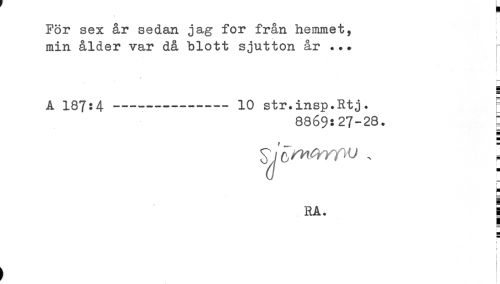 //// r //// För sex år sedan jag for från hemmet, //// min ålder var då blott sjutton år ... //// a //// A 187:4 -.-----10 str.insp.Rtj. F //// 8869:27-28. = //// a //// t //// - //// RA. = //// H //// f //// i //// ! ////